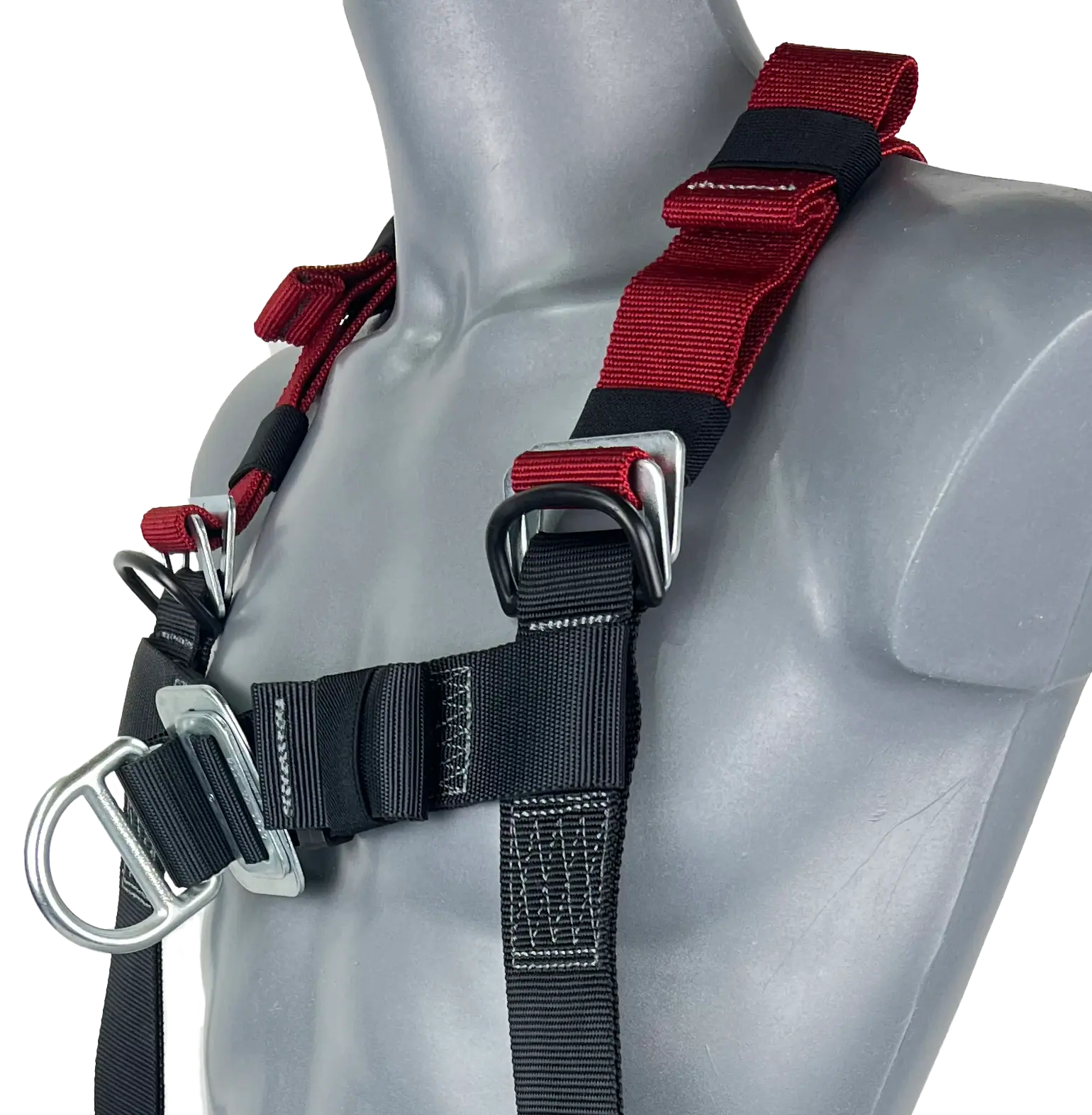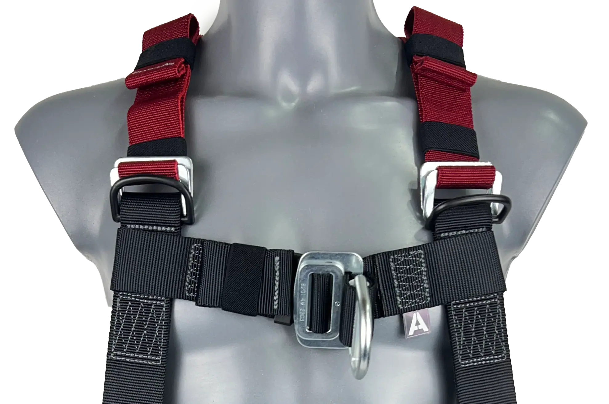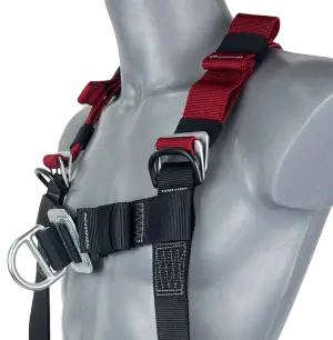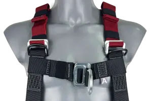 Our elasticated fall arrest safety harness with one rear ‘dorsal’ and one front ‘sternum’ attachment point.