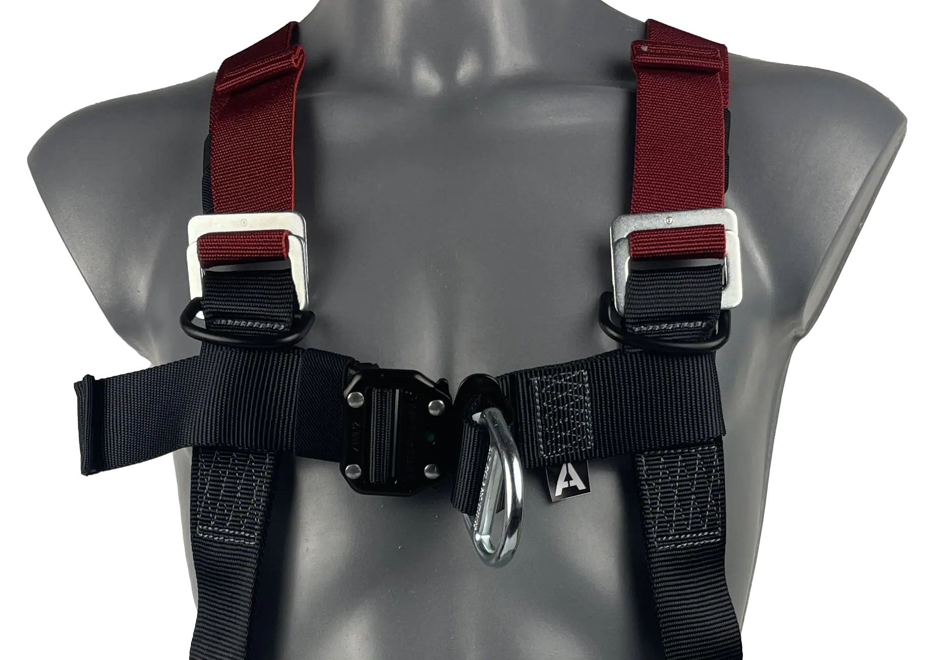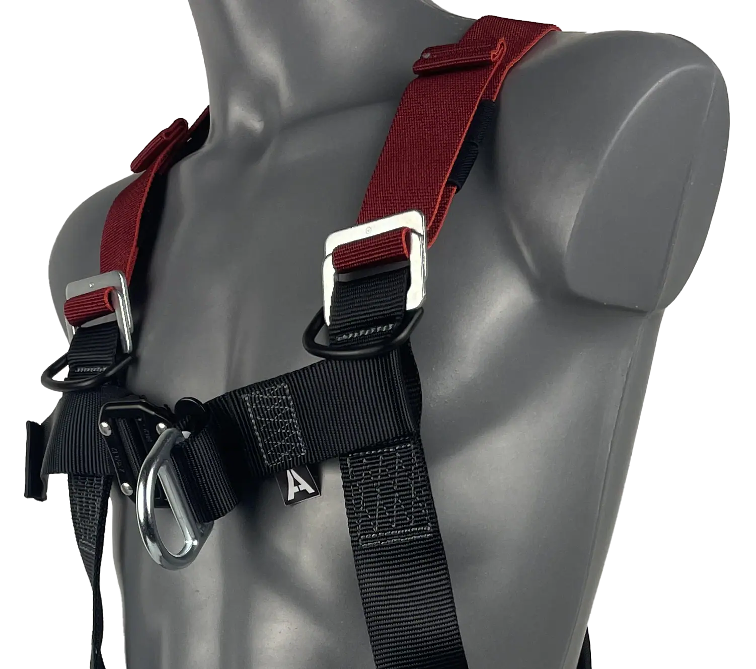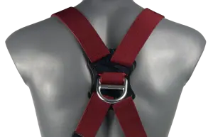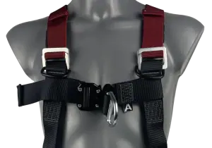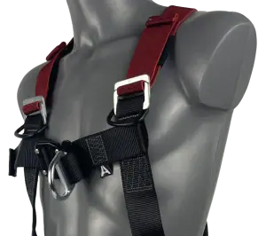 Our elasticated fall arrest safety harness with one rear ‘dorsal’ and one front ‘sternum’ attachment point.