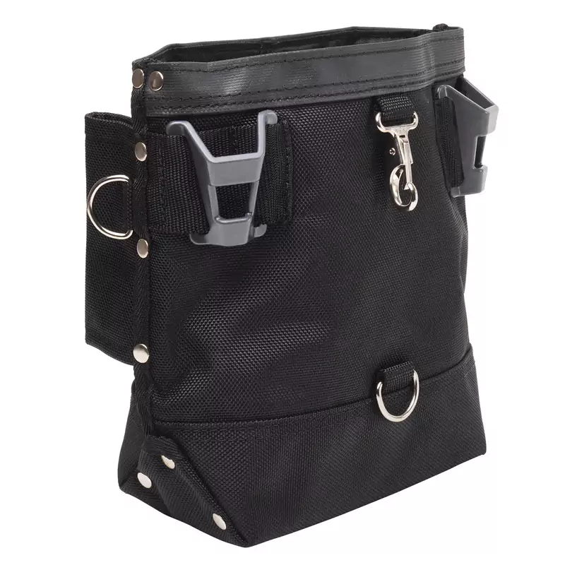 QUICK-SWITCH BOLT BAG WITH 2 DOCKS (Single) - The best of both worlds – the Quick Switch Bolt Bag & Tool Holder combines two Quick Switch docking points and a deep cinch-top bag suitable for bolts, rivets, or other small parts. Accommodates multiple tools without dangling cords and allows 100% tie-off for secure transfer of tools while working. The perfect solution for girder or steel work.