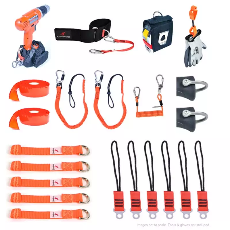 The Steel/Ironworker Tool Tether Trade Kit is designed to prevent dropped objects and is compatible with tools like hammers, pliers, spud wrenches, and tape measures. It features coil, bungee, and wrist tether options for comfort, with swiveling tethers to prevent tangles. Ideal for steel and ironworkers, it also suits other trades like millwrights, welders, and pipefitters. Sold as a single unit, it ensures safety and efficiency on demanding worksites.