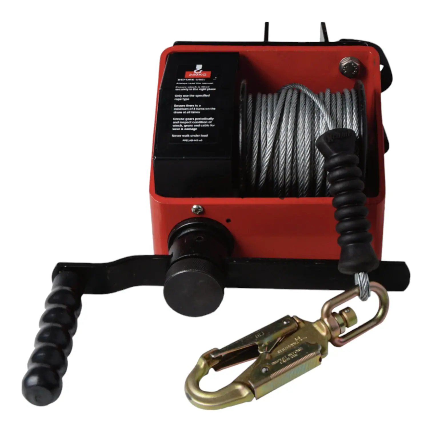The Worm Gear Winch can be used as a primary man-riding winch if used with a suitable backup and rescue device. It can also be used for materials or a combination of both up to 250kg.